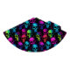 This party hat is shown in a colorful spooky Halloween skulls print.