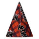 Fun Halloween party hat featuring ghost candle lettering on a bold red plaid pattern. Perfect for costume parties, spooky celebrations, and festive gatherings.