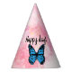 Chapéu De Festa Magical blue butterfly pink glitter art