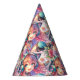 Bela anime teme chapéus de aniversário. O rolo da menina rosa e azul patinando chapéus de aniversário.