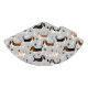Cães de Caça-Basset com casacos castanhos, pretos, brancos e limões com ossos de cão espalhados e pata imprime padrões divertidos para cães.