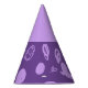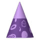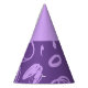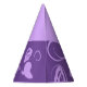 Esta festa de papel que apresenta um design divertido baseado em linhas circulares, pontos artísticos e bolinhas planas em lilás sobre fundo roxo. A parte superior é da mesma cor do impressão.