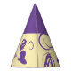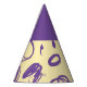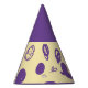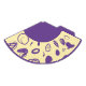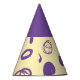 Esta festa de papel que apresenta um design divertido baseado em linhas circulares, pontos artísticos e bolinhas planas em roxo sobre fundo branco amarelado. A parte superior é da mesma cor do impressão.