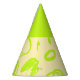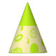 Esta festa de papel que apresenta um design divertido baseado em linhas circulares, pontos artísticos e bolinhas planas em verde limão sobre um fundo branco amarelado. A parte superior é da mesma cor do impressão.