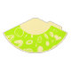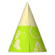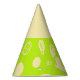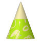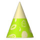 Esta festa de papel que apresenta um design divertido baseado em linhas circulares, pontos artísticos e bolinhas planas em branco amarelado sobre fundo de verde limão. A parte superior é da mesma cor do impressão.