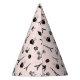 Chapéus de festas brancos e chicos, com padrão parisiense, apresentam pequenos pássaros, croissantes, macarões, rosas, xícaras de café, e é claro, a torre Eiffel, em preto e branco sobre fundo de pincel pálido. Perfeito para chás de panela e festas de aniversário temáticos de Paris quando combinado com nossos convites e acessórios correspondentes.