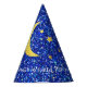 Partido do feiticeiro sua lua Dourado do texto e cor azul do teste padrão do brilho das estrelas e seu texto