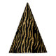This party hat is shown with a fun faux glitter tiger print in black and gold colorings.