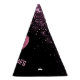 This party hat is shown with a fun pink faux glitter heart print, pink glitter print cascading from top and on sides. Text of New Years in coordinating pink, all on black background.