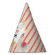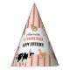 A hand drawn cute petting zoo party animals design featuring illustrations of a goat, goose, hamster, llama, pig, baby chick, cow and rabbit . A beautiful petting zoo themed design ideal for kids petting zoo themed birthday parties. Customize this cute petting zoo animals birthday party hat and make it your own!