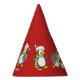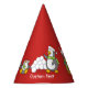 Ícones bonitos e felizes de desenho animado de pinguim vestindo chapéus e lenços de anã e tocando com bolas de neve.