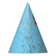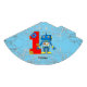 Um robô azul e amarelo bonito em um fundo do circuito de computador. Grande chapéu da festa de aniversário para o bebê de um ano!
