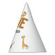 Celebre o primeiro aniversario de estilo do seu filho com esses chapéus únicos de papel de primeira festa, com o tema safari. O design apresenta um grupo de adoráveis animais da selva em um design simples e ousado e o nome do aniversariante.