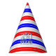 Semiquincentennial stars and stripes party hat with celebratory bright blue for 2026 with editable 4th Of July 250 Years text.