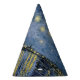Algodão em Cordeville. Vincent Willem van Gogh. Paisagem noturna em tons azuis e amarelos escuros. Há uma ponte sobre o rio. No primeiro plano, um homem e uma mulher caminham pelo cais. As estrelas estão brilhando no céu. Reprodução de famosas imagens de arte no dominio público.