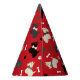 Cães escoceses, cinzas e cães escoceses que vestem arcos, com pegadas e ossos de cães em fundo vermelho.