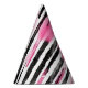 Chapéu De Festa Tiras de Zebra Negra Branca, Rosa-Rosa