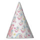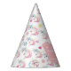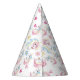 O design apresenta um padrão perfeito de cabeças de unicórnio elegantes com manes ondulados, de cor pastel, em rosa, azul e amarelo, adornados com faíscas. Os unicórnios têm olhos expressivos e chifres ouros, dando a eles uma aparência mágica. Espalhados pelo padrão estão corações cor-de-rosa e flores delicadas em tons de amarelo, rosa e azul. O fundo é branco, permitindo que os elementos vibrantes se destacem, criando uma estética baleeira e sonhadora.