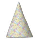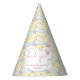 O design apresenta um fundo amarelo pálido com elegantes cabeças de unicórnio brancas que têm manes pastel cor-de-rosa, azuis e amarelos fluindo. Os elementos circundantes incluem nuvens azul-esboçadas, luas em crescente e estrelas dispersas em amarelo e rosa. Os unicórnios têm chifres ouros e olhos expressivos, acrescentando um toque mágico. O padrão perfeito cria uma estética baseada em sonhos e fantasias.