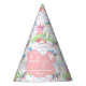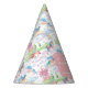 O design apresenta um padrão perfeito, sonhador, ao estilo aquarela, com unicórnios, castelos, arco-íris e nuvens, criando uma atmosfera de fantasia. O fundo apresenta castelos magicos cor-de-rosa com tartarugas, colocados contra colinas verdes rolantes com árvores. As nuvens suaves e peludas e os detalhes florais delicados, incluindo as pequenas flores e o trevo, são espalhados pelo design. Um arco-íris pastel sobrevoa parte da cena, somando a estética caprichosa, fantasia. A paleta de cores consiste em pastas macios, incluindo cor-de-rosa, azul, verde e amarelo, dando ao design uma sensação de feto, mágica.