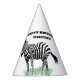 Jogue uma festa selvagem com chapéus de papel personalizados com uma ilustração realista de uma zebra preta e branca em algum capim verde. Esses suprimentos de festas estão prontos para serem personalizados com sua própria mensagem personalizada.