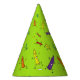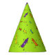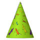 os pastéis coloridos felizes em um fundo verde-claro fazem este chapéu do partido do divertimento para miúdos