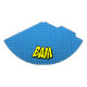 Festa de bolinhas azul e preto que apresenta texto BAM. Fácil de montar. Este padrão de pontos coordena-se com a Coleção de Partido de Super-Heróis em nosso compro, assim como a maioria das festas de aniversário de temática de Superheróis. Também disponível em nosso compro sem o gráfico BAM.