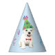Feliz aniversário saudações com este design bonitinho com um feliz e vestido cachorrinho de West Highland White Terrier, rodeado por galerias coloridas.
