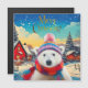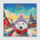 Um Urso Polar vestindo um chapéu de Papai Noel e cachecol com neve caindo. Feliz Natal.