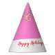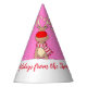 A rena corajosa com os antlers grandes na neve profunda e uma arte feita sob encomenda vermelha grande do nome do nariz e a cor-de-rosa do céu party o chapéu. Ideal para o feriado festivo ou para adicionar algum divertimento do Natal em um partido ou em um evento festivo. Personalizado com seus próprios nome de família ou cumprimento e mensagem. Desenho original do © e design gráfico por Sarah Trett www.sarahtrett.com para www.mylittleeden.com no zazzle.