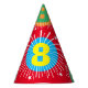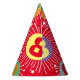 Chapéus de cone de Festa de aniversário de papel de criança costume divertidos. Design bonitinho com número de idade personalizado e fogos de artifício e cores brilhantes. As cores podem ser alteradas. Design para a celebração infantil.
