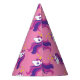 Chapéus de cone de papel Festa de aniversário de uma menina de unicórnio rosa. Um bom padrão com impressão de conto de fadas. Cor rosa ou personalizada. Personalizar com texto opcionalmente. Altere a quantidade que obtém o preço em massa barato.