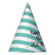 Nomes personalizados de chapéus de Festa de aniversário distribuído com cadeia elástica. A festa personalizada fornece seu próprio nome, monograma ou citação engraçada. Tiras diagonais de cores personalizadas, por exemplo, azul de turquesa. Acessórios bonitos para gags. Adequado para homens, mulheres e crianças (menino ou menina). Modelo de tipografia divertida com idade personalizável. Faça suas próprias festinhas loucas para a surpresa do DIY Aniversário, festas de escritório, festas de crianças, chá de fraldas, chá de panela, casamento, aniversário, noivado, aposentadoria etc. Chapéus criados para 1rua segundo 3.o 5 4.o 6 7 12 8.o 9.o 11 13 10.o 15 16 17 18 19 20 21rua 40.o 60 70 3 100.o dia! Personalizar para pai, pai, tio, mãe, mãe, irmã, irmão, amigo, primo, avô, vovó, chefe, funcionário, colaborador, voluntário, enfermeiro, professor etc.