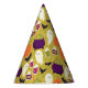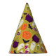 Adicione um toque de reluz à sua celebração do Dia das Bruxas com este charmoso chapéu de festa! Apresentando ilustrações personalizadas desenhadas à mão sobre um fundo verde alegre e alegre, este chapéu mostra fantasmas adoráveis, abóboras sorridentes, caldeiros roxos e morcegos brincalhões. Perfeito para crianças e adultos.