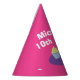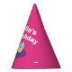 Chapéus de festas de papel para o evento de aniversário de cupcake de criança. Chapéus de cone coloridos divertidos com nome personalizado. Design para panificação de Festa de aniversário temática.