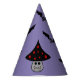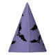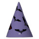 Um cogumelo bonito de vampiro, com um boné preto, manchas vermelhas, e pequenas presas fúngicas. Eles estão cercados por caves vampiras em um fundo roxo.