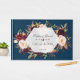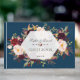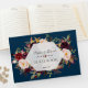 Encantador, Borgonha, Vermelho, design de Cartão Floral de Marsala. Apresenta lindas flores borgonhentas, douradas, douradas marsala, forma semitransparente, todas sobre fundo azul marinho. Use a ferramenta Personalizar para adicionar suas informações. Por favor, visite minha Coleção Floral Burgundy Red Marsala