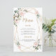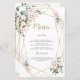 Design de cartão encantador com cor d'água, flores rosadas e pinceladas delicadas, cor-de-rosa, e folhas verdes, uma falso estrutura poligonal dourada, sobre fundo branco. Use a ferramenta Personalizar para adicionar suas informações, alterar fontes, cores da fonte. Por favor, visite minha coleção de 16 festas Quinceañera e Sweet.