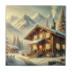 Cena de inverno inspirada nos Alpes, com um chalé confortável cercado por árvores cobertas de neve e montanhas majestosas. Perfeito para decoração rústica, arte sazonal e inspiração de feriado!