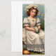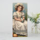 Uma jovem com um vestido elegante de vintage se senta em um tronco de madeira, segurando um óvulo de Páscoa belamente decorado. Cercado por flores florescentes e um curioso coelho, a cena exude calor, nostalgia e espírito de Páscoa.