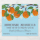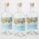Rótulo de Arancello para favores de casamento e outros presentes com um cheio de laranjas desenhado à mão, flores laranja e folhas verdes contra fundo azul claro. Adicione seus nomes em um encantador roteiro rústico. O rótulo da garrafa de Arancello para a bebida de arancello caseira com um charmoso cheio de laranja rústico de frutas maduras e flores bonito e folhas verdes.