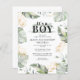 Garotos selvagens, calmos e elegantes, açari, convite para chás de fraldas de animais com girafa, efeito ouro e folhas verdes. Perfeito para convites de orçamento de chá de fraldas para rapazes