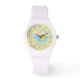 Chaucer, o pato de borracha amarela, flutua entre as bolhas de uma banheira, esperando sua próxima aventura. Este relógio está disponível em vários tamanhos, cores e estilos, incluindo tamanhos para crianças e adultos.