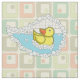 Chaucer, o pato de borracha amarela, flutua entre as bolhas de uma banheira, esperando sua próxima aventura. Este tecido é excelente para qualquer projeto de artesanato para o quarto ou brinquedos de uma criança.