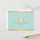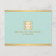 Coordena-se com o Elegante Dourado Chave grega sobre o Modelo de cartão de negócios do Designer de Casa da Moeda até 1201AM. Um emblema de chave grego dourado metálico falso é combinado com seu nome ou nome comercial para um logotipo chic neste modelo de cartão postal do designer. Colocada sobre um fundo de menta para uma estética de safra. © 1201AM CREATIVE