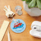 Cartoon de um homem de forma azul lavando um carro vermelho. Cor de fundo personalizada. Texto personalizado de ambos os lados.