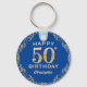 chaveiro de quadro brilhante azul e Dourado com Festa de aniversário de 50ª . Para mais personalização, clique no botão "Personalizar" e use nossa ferramenta de design para modificar este modelo.