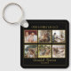 6 Photo Collage Square Black Gold Keychain
