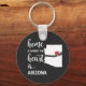 A arizona é onde está o coração - em letras mistas e letras brancas maiúsculas com a silhueta do estado e um embelezamento cardíaco vermelho.