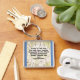 Família é a chave é uma bela inspiração retratando a alegria que as famílias podem trazer! Há um abstrato de corações, flores, vinhas e ameixas de açúcar no fundo e é borrado de azul em ambos os lados! Este chaveiro de atordoante será uma adição de na moda a qualquer chave!